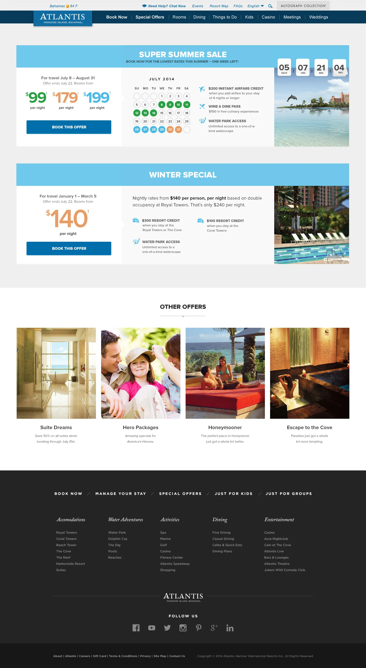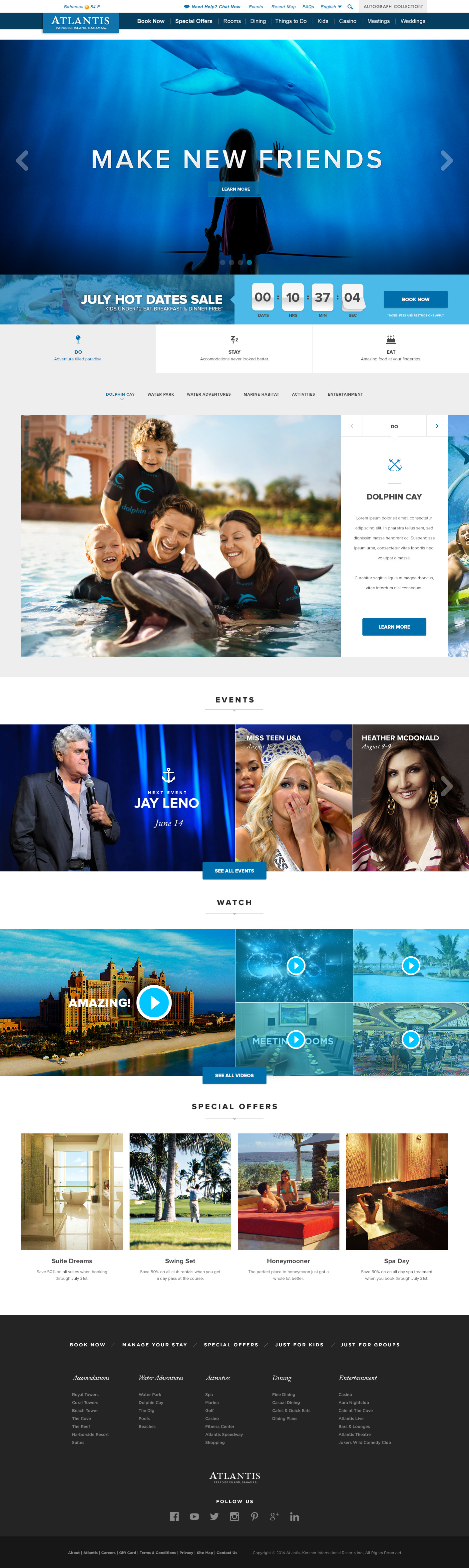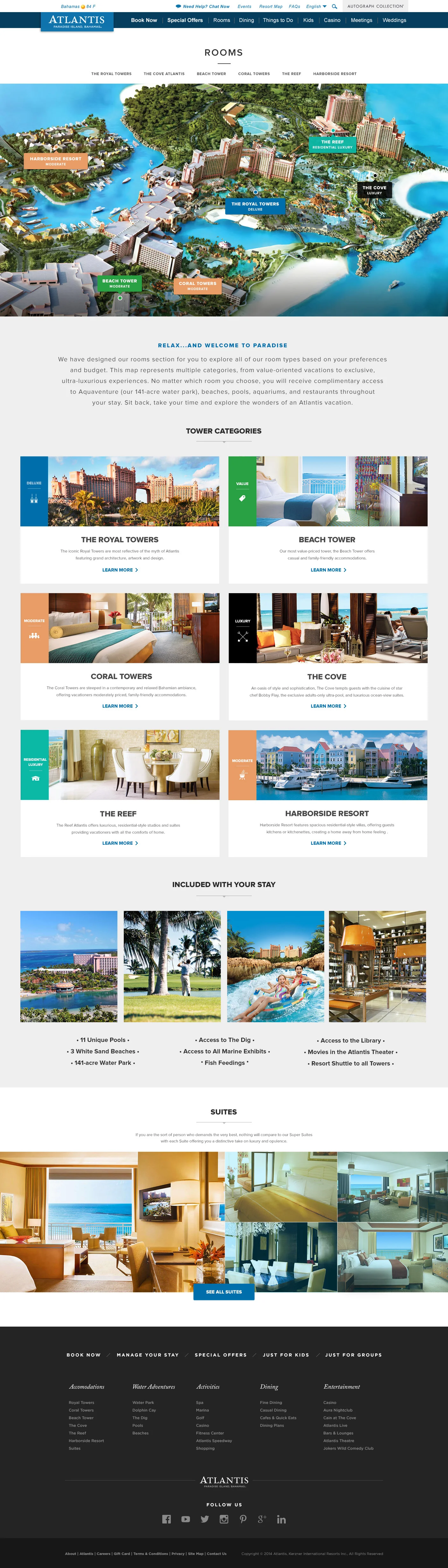 Atlantis Bahamas is a popular resort with many different kinds of travelers, and they needed a site that could accommodate all of the various events, amenities, offerings and promotions clearly. They also needed the site to be responsive, to target the growing number of travelers who book using mobile. Our solution was a flexible, card based system with strict grouping by category to minimize confusion, combined with full-width photography to offer an immersive and intimate experience of staying at the resort.